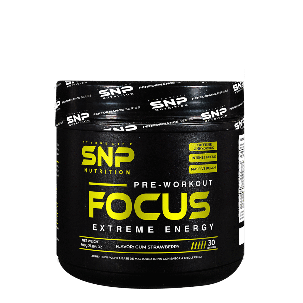 FOCUS de SNP Nutrition es un potente pre-workout formulado científicamente para quienes buscan entrenar con intensidad, concentración y energía explosiva. Cada porción de 20 g combina ingredientes clínicamente probados que mejoran el flujo sanguíneo, la resistencia y la fuerza mental antes del entrenamiento.
