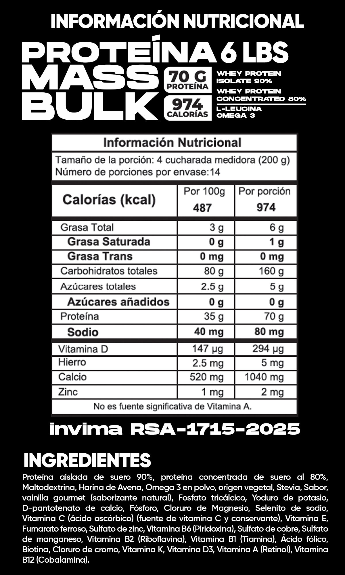 El cambio es únicamente de nombre: Mass Bulk conserva la misma fórmula potente, misma calidad nutricional y los mismos resultados comprobados en aumento de masa muscular.
