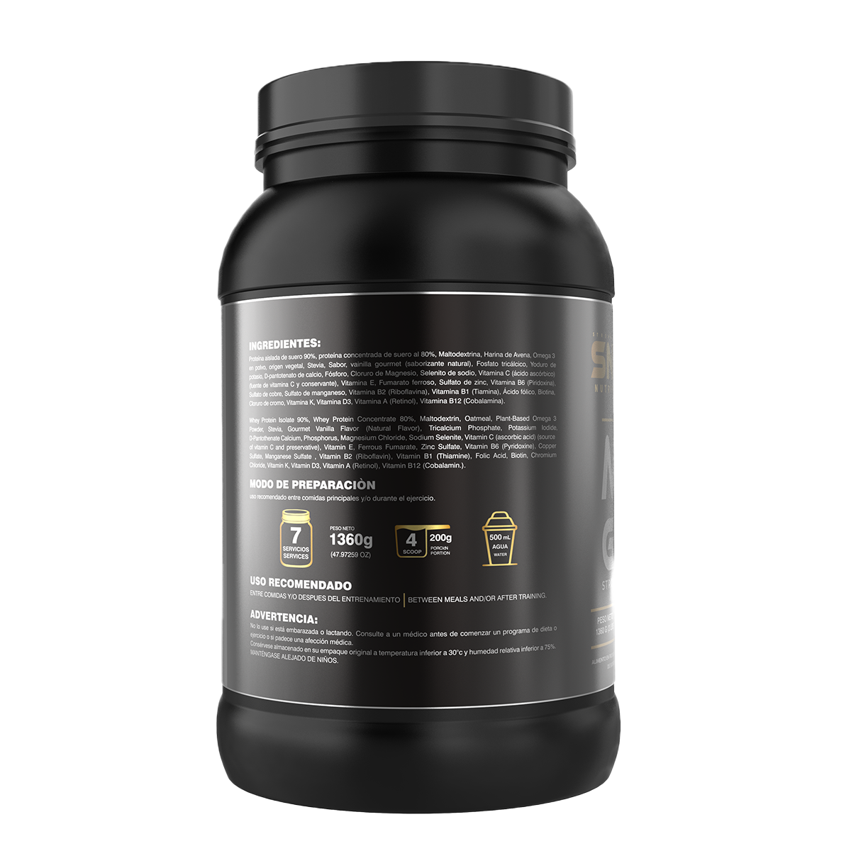 Este gainer combina fuentes de proteína de rápida y lenta absorción, junto con carbohidratos complejos que garantizan energía sostenida.